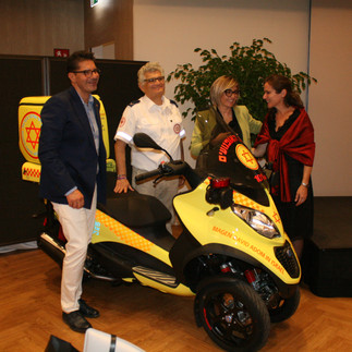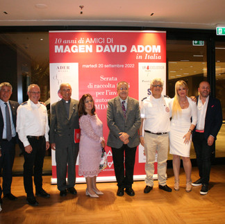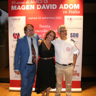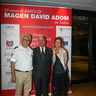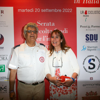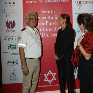 Oltre 160 ospiti e molte personalità internazionali per una serata memorabile, soprattutto per le parole che sono riecheggiate in questo 20 settembre nella sala gremita dell’Hotel Sheraton San Siro di Milano. Sala che, per l’occasione, è stata addobbata con i colori bianco e rosso che spettano alle organizzazioni di soccorso internazionali e con la fiammante moto medica gialla che sfoggiava una dedica al Presidente della Repubblica Italiana Sergio Mattarella e la Stella Rossa del Magen David Adom.