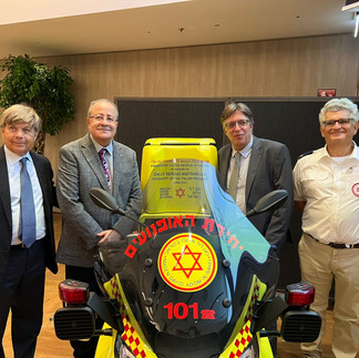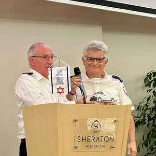 E proprio da Israele è giunta una significativa delegazione di MDA capitanata da Yonatan Yagodovsky, Director, Fundraising & International Relations MDA. “Siete per me motivo di felicità, il fatto di essere sostenuti da voi è assolutamente importante per il nostro lavoro quotidiano. Sono veramente fortunato che Sami si sia preso il compito di ristabilire l’organizzazione qui diffondendo i nostri valori e le nostre idee”, ha dichiarato prima di regalare al Presidente dell’Associazione Italiana un bellissimo modellino di ambulanza.