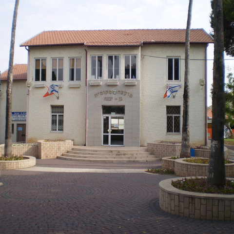 E qui al numero 43 si trova anche il municipio, una bassa struttura funzionale che sul retro ospita l'attuale piccolo presidio di Magen David Adom. Poco distante sulla parallela Rehov Ha-Shoftim, al numero 11, troviamo invece la caserma dei Pompieri. E' qui che sorgerà la nuova sede operativa di Magen David Adom a Gan Yavne.